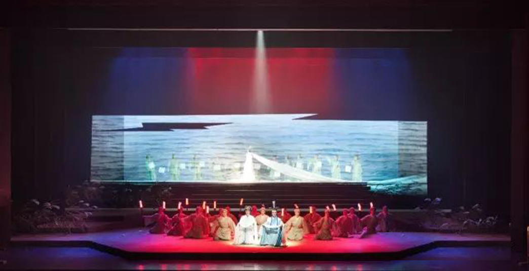 新編越劇《屈原》講述了春秋戰(zhàn)國時(shí)期楚國左徒屈原欲推行“美政”,卻因奸人排擠慘遭流放,最終投江而亡的悲壯故事。該劇立意高遠(yuǎn)、深刻、厚重,劇情跌宕起伏,對(duì)燈光設(shè)計(jì)的要求也非常高,既要體現(xiàn)出該劇的厚重歷史感,又要呈現(xiàn)江南越劇婉轉(zhuǎn)風(fēng)韻。
