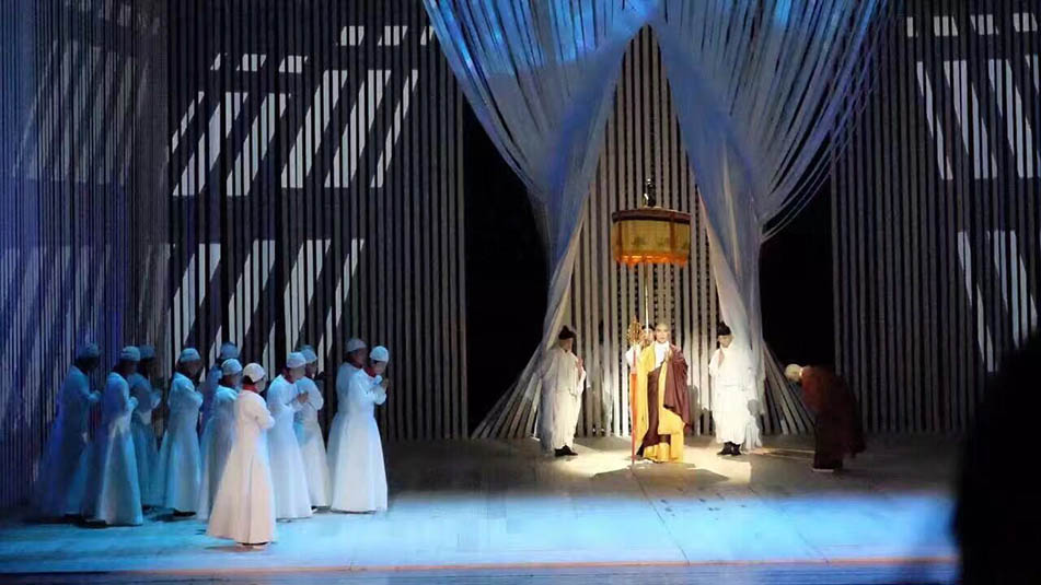 由江蘇省委宣傳部組織指導(dǎo),江蘇省演藝集團(tuán)傾力打造的一部大型原創(chuàng)歌劇《鑒真東渡》將于12月20日赴日本東京進(jìn)行首演。作為江蘇省演藝集團(tuán)2016年的重點(diǎn)劇目之一,《鑒真東渡》在11月22日進(jìn)行了首次全劇彩排。這部精品劇目全部采用浩洋電子特寶麗品牌燈光,包括切割燈V3000P、圖案燈V2500S、染色燈V2000W、光束燈PT230B、LED染色燈GLW370Z等。強(qiáng)大的特寶麗燈光陣容搭配別出心裁的設(shè)計(jì),將合力再現(xiàn)千古傳奇。