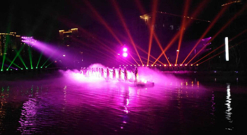 《夢(mèng)回穿紫河》是由湖南省演藝集團(tuán)與經(jīng)山水公司共同整合相關(guān)資源,并集合國(guó)內(nèi)最優(yōu)秀的編創(chuàng)團(tuán)隊(duì),歷時(shí)半年,精心打造的湖南首臺(tái)城市風(fēng)情實(shí)景燈光演出秀。浩洋電子傾力參與打造,承擔(dān)了從系統(tǒng)設(shè)計(jì)、設(shè)備供應(yīng)、安裝實(shí)施、彩排合成到技術(shù)服務(wù)支持的全部燈光工程內(nèi)容,應(yīng)用浩洋電子旗下特寶麗品牌14R及20R三合一電腦燈、圖案切割燈PT801P、LED PAR燈A59、防水罩WP06等近500臺(tái)專業(yè)燈光產(chǎn)品,通過燈光設(shè)計(jì)與演出內(nèi)容的緊密結(jié)合,巧妙地將的唯美絢麗的燈光與旖旎的穿紫河水融為一體,為游客呈現(xiàn)了一場(chǎng)具有濃郁水鄉(xiāng)風(fēng)情及豐厚人文底蘊(yùn)的光影藝術(shù)饗宴。《夢(mèng)回穿紫河》的精彩首秀,接連獲得社會(huì)各界的高度好評(píng)!