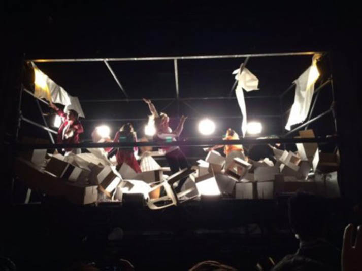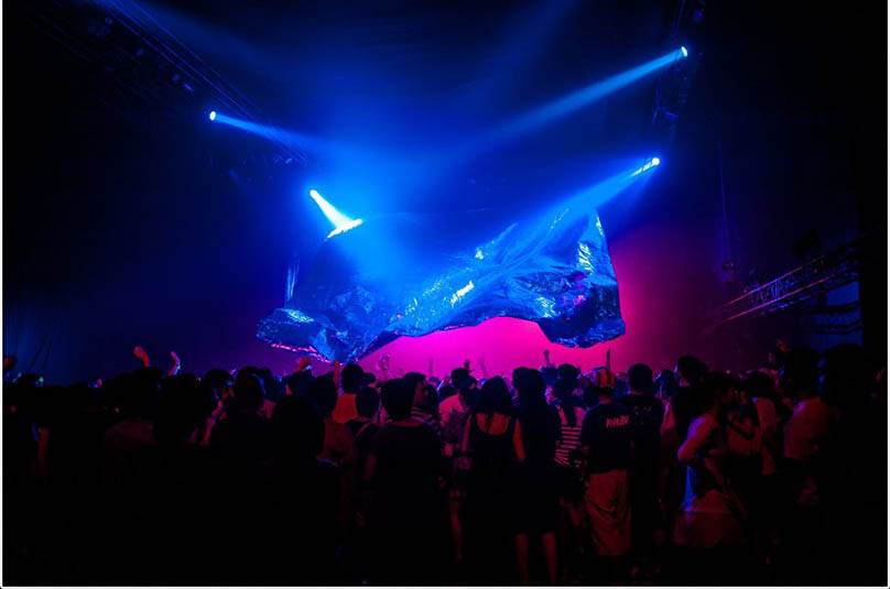 另外,表演者與觀眾零距離互動也同樣是《極限震撼》的一大特色。在節(jié)奏感極強(qiáng)的音樂背景下,演員甚至?xí)挛枧_,深入人群,調(diào)動觀賞者積極性,用泡沫板拍打觀眾頭頂,與觀賞者共舞,使其成為“秀”的一部分。