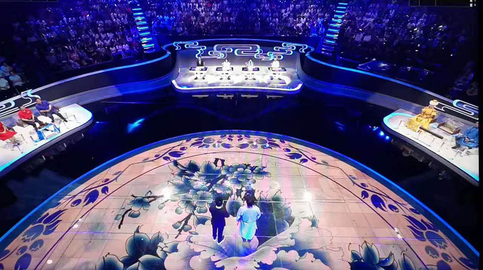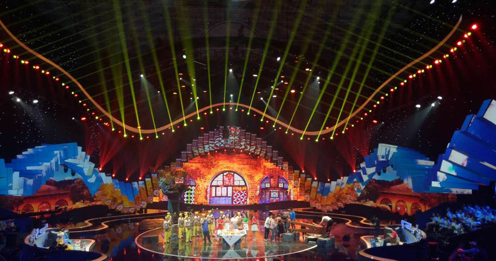節(jié)目《魅力中國城》中“大眼睛”舞美、連貫飄帶屏、舞臺地面LED上層的玻璃質感與舞臺視覺的完美配合,使舞臺的舞美影像畫面散發(fā)著濃郁城市特色,為觀眾帶來了新的、豐富的視覺層次。