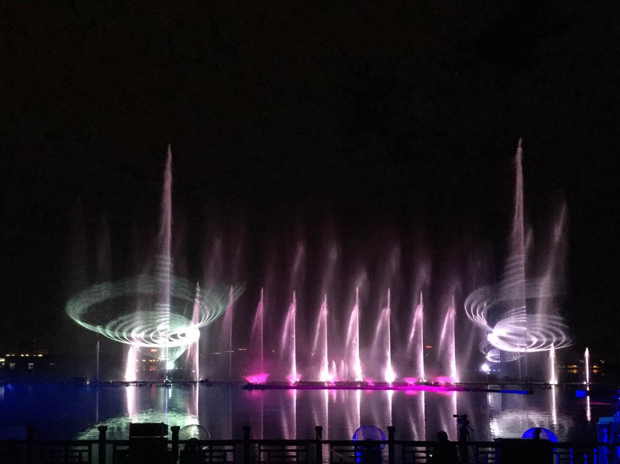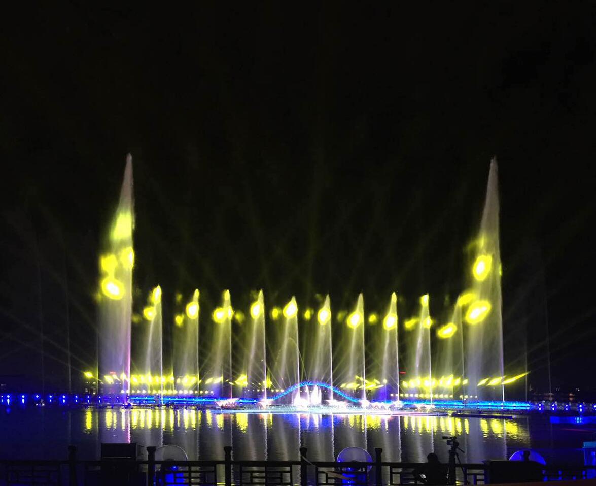 演出位于銀川閱海灣的一個核心區(qū),其擁有約3000㎡的漂浮平臺作為主表演區(qū)域,包含了機械、主體噴泉、投影激光,還有燈光音響等一系列設備,前方還設有890㎡的水下舞臺作為演員的主舞臺。