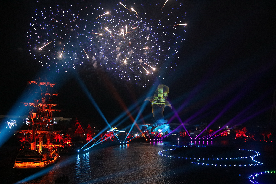 在此次改造升級選用燈光設(shè)備中,浩洋電子從國內(nèi)多家燈光企業(yè)的激烈角逐中脫穎而出,“天外飛燈-FOS360”系統(tǒng)、IP65三合一全能王G20HYBRID IP等燈具最終被選定,遍布在長隆海洋王國的中心湖、鯨鯊廣場等,以科技點(diǎn)亮這一場全新的大型夜場匯演,用炫酷的燈光效果與煙花匯演精彩地結(jié)合在一起。