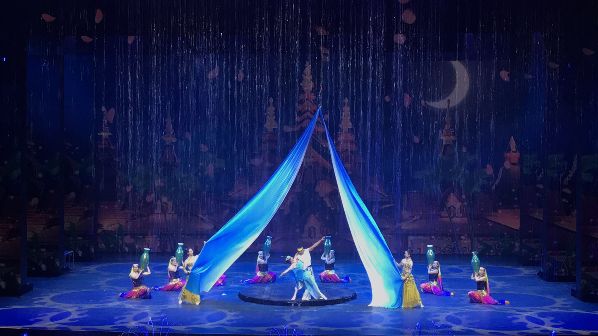 大型情景雜技劇《江湖》總導演為邊發(fā)吉老師,視覺導演為劉桐春老師,燈光設計為苗壯老師。該劇以“四大江湖”為主要串線(巾:打卦算命,漢:買大力丸,粒:變魔術,摶:說書唱戲),以吳橋雜技歷史為背景,以歌舞、雜技、武術、時裝秀、影視特技等藝術形式和舞臺燈光美術相結合。