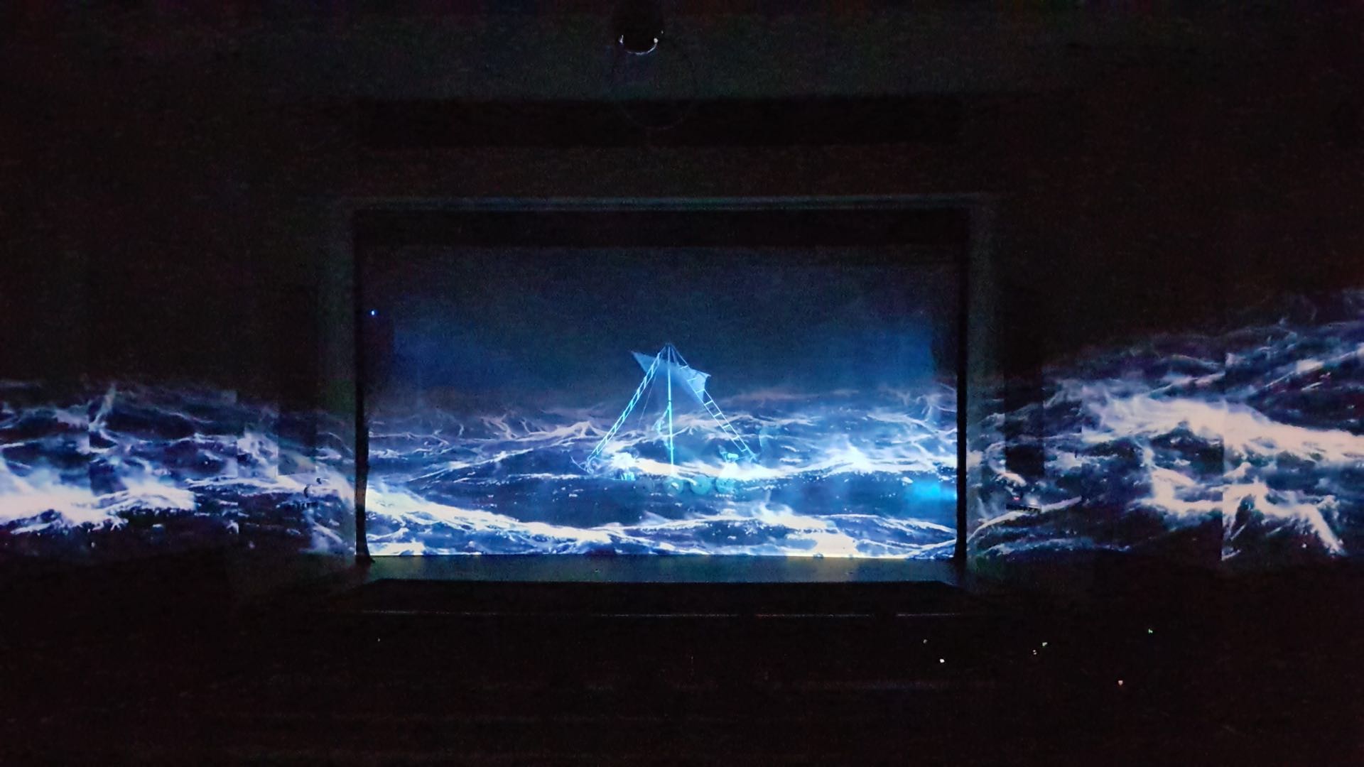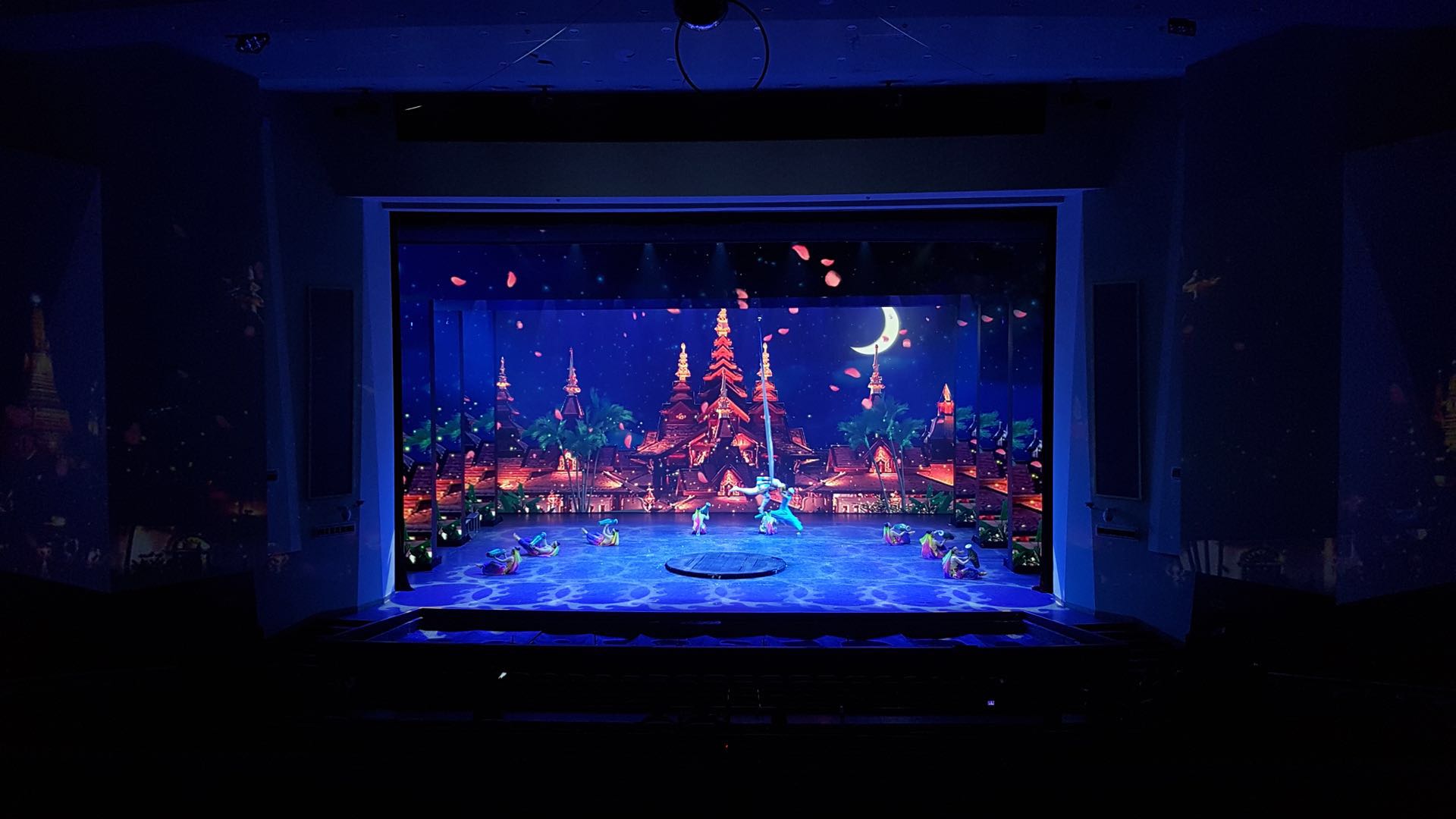 在演出現(xiàn)場,浩洋電子的迷幻燈光配合演出橋段將場景從故事中帶到現(xiàn)場觀眾中的眼前。絢麗的舞臺效果令人震驚,雨雪雷電的實景、全場旋轉的七彩燈光、舞臺與觀眾席上的激情互動,一次次將觀眾的情緒帶向高潮。