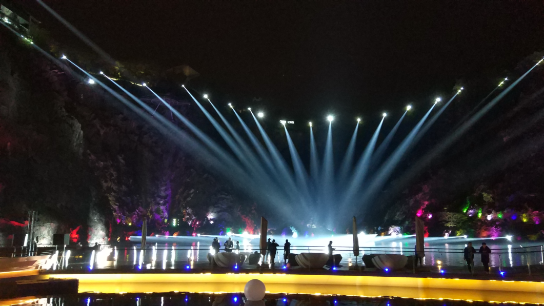 酒店沿崖壁而建,面向橫山,戶外工程環(huán)境復(fù)雜,其深坑巖壁的曲面造型,致使燈具懸崖運輸,特別是位于崖壁下的安裝工程,由于地理環(huán)境的限制,無法采取常規(guī)施工技術(shù)方案,為浩洋工程部增加了極大的工程施工難度。但我們的團(tuán)隊并沒有氣餒,而是迎難而上,在確保高工藝水準(zhǔn)的情況下,以專業(yè)的工程專業(yè)技術(shù)能力和高度負(fù)責(zé)的態(tài)度,針對本項目特殊地勢制定專門的施工方案,克服了大范圍水上作業(yè)、高空懸崖作業(yè)安裝等重重困難,最終如期、高質(zhì)量的完成項目。另外,浩洋的團(tuán)隊除了承擔(dān)燈光設(shè)備的安裝工作外,還積極參與整體控制系統(tǒng)的融合、同步控制工作,保證了總導(dǎo)演的設(shè)計理念得以完美實現(xiàn),打造出一場震憾的、聚集各種創(chuàng)意視覺的的奇境光影水秀。