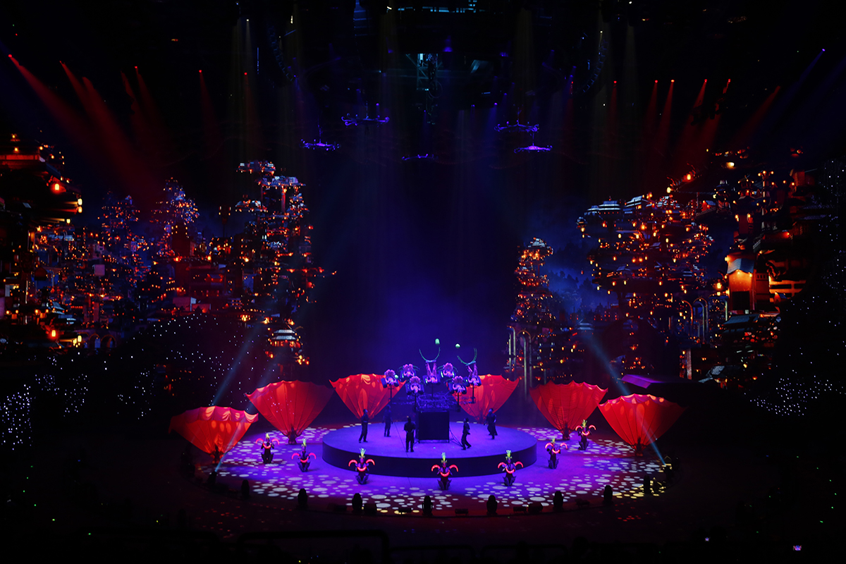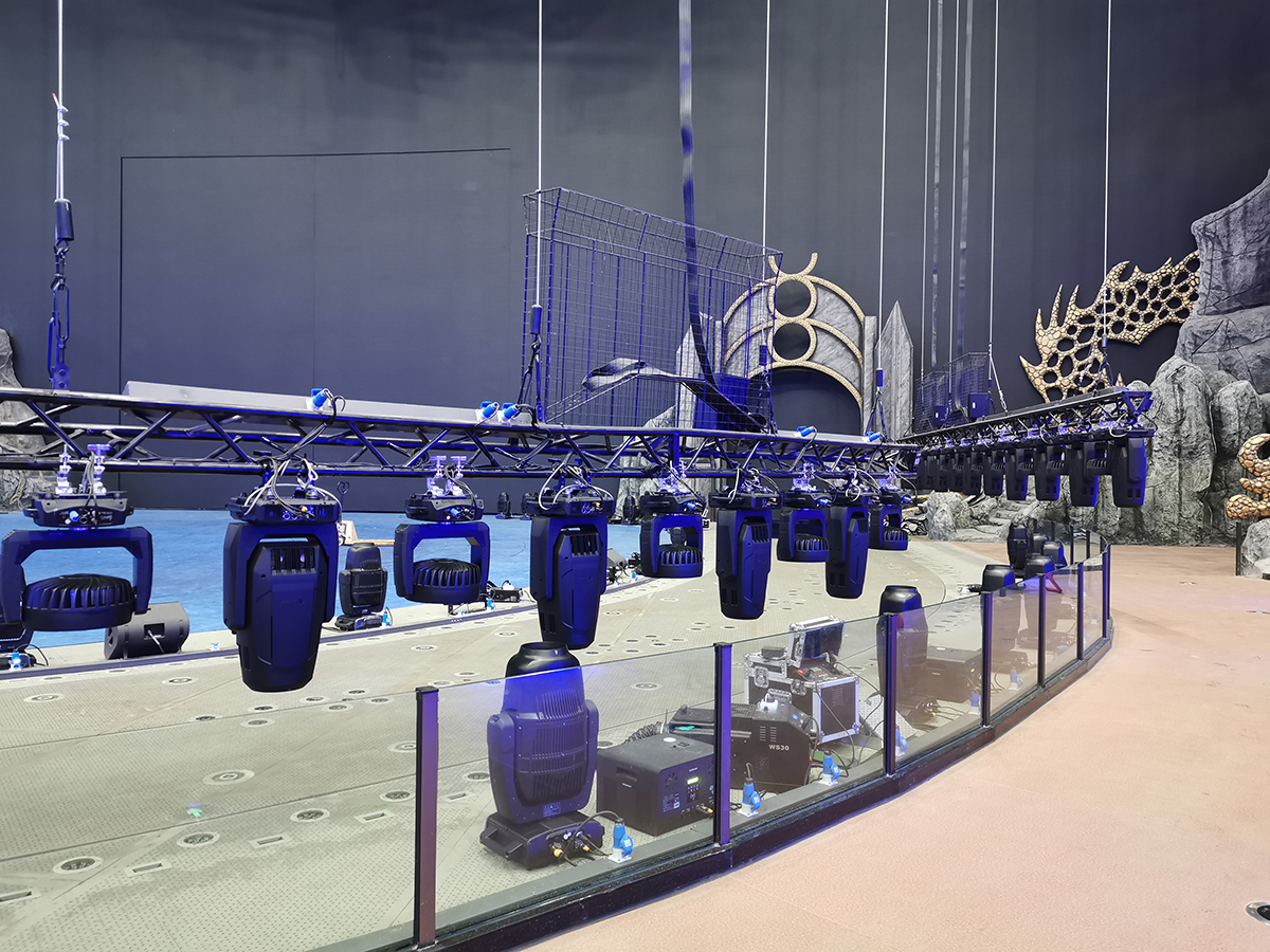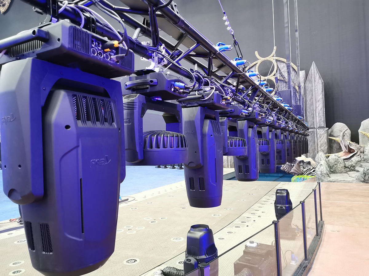 作為全新的文旅地標,長隆劇院設計體現(xiàn)出智能科技的前沿性和實用性。現(xiàn)場使用了實現(xiàn)實時升降的智能電腦燈具,其中浩洋電子傾力支持了大部分燈具,其中建筑照明燈GSARC DOT M系列提供了180臺,以科技之光點亮這場全新的大型馬戲,運用多屏幕的全景環(huán)繞技術將極致地將舞美、燈光、音響等元素重新定義整合,使劇情氛圍更加緊湊。