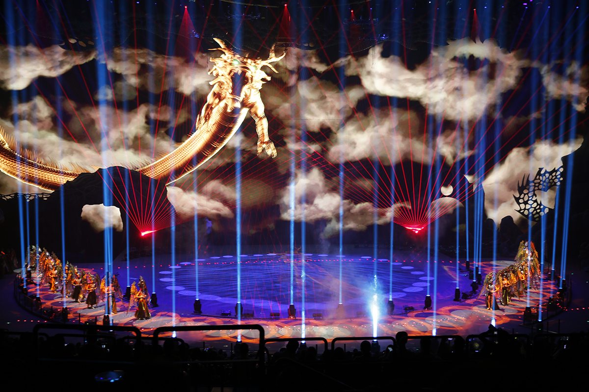 《龍秀》把傳統(tǒng)馬戲與舞臺表演劇相結(jié)合,這是對傳統(tǒng)馬戲的一次新的突破與嘗試,這堪稱長隆國際演藝的又一里程碑新巨作。同時,《龍秀》也是一場國際大秀,融合了雜技、舞蹈、魔術、極限運動、聲樂、花樣游泳等多種藝術門類,匯聚了來自22個國家、30多支團隊、300多名各個國家優(yōu)秀的馬戲藝術家共同演繹這出大制作。