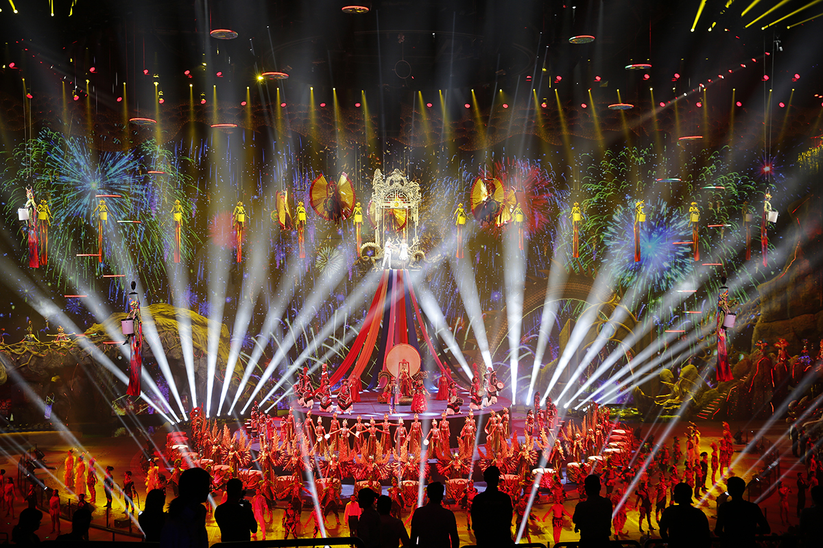 據(jù)長隆劇院《龍秀》的執(zhí)行導演李西寧介紹,為了更好地表達中國龍的奮斗精神,長隆劇院創(chuàng)新性地完美融合了“水陸空”的設計理念,多達41臺的巡游花車在觀眾面前出現(xiàn),多種空中升降設備以及水上花船、雙層水簾等效果在不同的情景靈活轉(zhuǎn)換,帶來別具匠心的演出效果,將無形的“龍”的形象賦予有形的呈現(xiàn)劇院內(nèi)設6700個觀眾坐席,觀眾可體驗到無與倫比的視覺體驗。