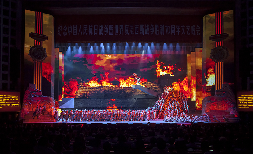 此外,于9月3日晚,在京的中央領(lǐng)導(dǎo)同志與出席抗戰(zhàn)勝利70周年紀(jì)念活動(dòng)的各國(guó)元首、部分外國(guó)政要、國(guó)際組織代表,抗戰(zhàn)老戰(zhàn)士老同志的代表及首都各界代表,共計(jì)6000余人將出席以“勝利與和平”為主題的抗戰(zhàn)勝利70周年文藝晚會(huì)。浩洋電子以自主品牌特寶麗的V2000W,1500W 搖頭染色;V3000P 1500 徹割成像電腦燈;G10 Hybrid三合一全能王電腦燈;OK370Z Led 搖頭染色;PT320B 搖頭光束電腦燈為抗戰(zhàn)勝利70周年增加色彩,讓過(guò)去的歷史在浩洋的燈光海洋中展現(xiàn)出恢弘大氣、氣勢(shì)磅礴、震撼人心的史詩(shī)性藝術(shù)效果!!!