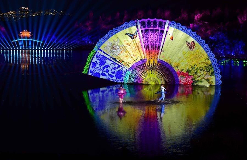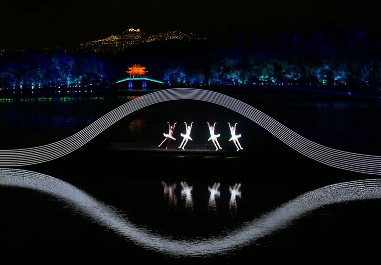 燈光是此次演出的一大亮點(diǎn),晚會總導(dǎo)演張藝謀說:“50分鐘的演出我們有100個(gè)以上的燈光變化,要靠燈光、湖水倒景、月色等方方面面?zhèn)鬟f出詩情畫意?!弊鳛?008年北京奧運(yùn)會開閉幕式燈光總設(shè)計(jì)、2014年APEC歡迎晚宴活動(dòng)燈光創(chuàng)意總監(jiān),此次G20峰會文藝演出的總制作人沙曉嵐,用燈光對西湖的山、水等自然元素進(jìn)行藝術(shù)再創(chuàng)作,勾勒一幅驚艷世界的視覺美景。