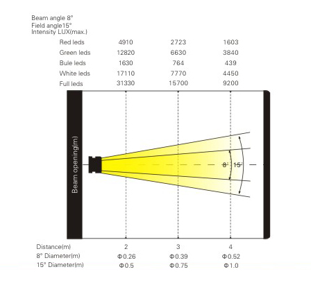 光束角度:8°, 光斑角度:13°