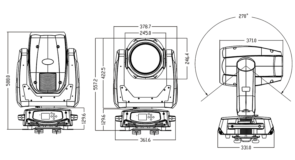 可從控臺完成更改DMX地址碼,遙控開關燈泡,機器重設,聲控模式的轉換等功能