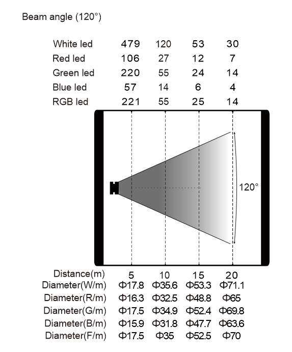 染色LED: 1.5WX384pcs RGB LED珠,每個(gè)分為12塊共48個(gè)區(qū)域控制